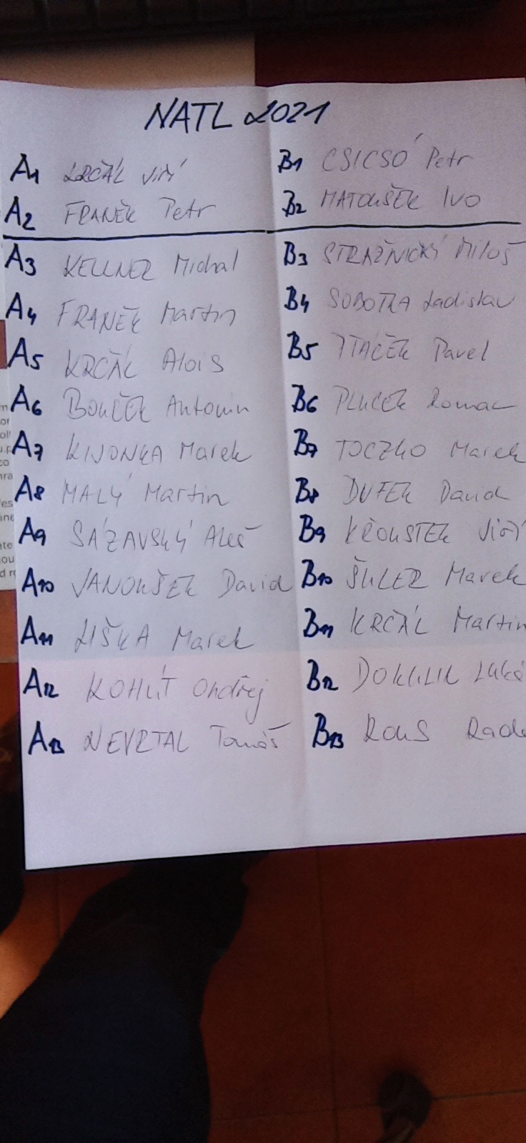 2. kolo skupina A Bouček Antonín - Krčál Alois 3:6 a 1:6